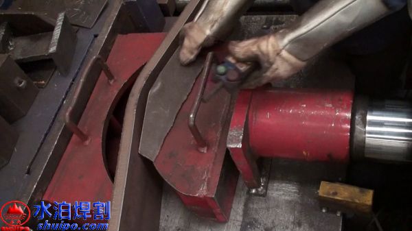 翼板折彎工裝是通過,液壓缸推動模具將翼板折彎,折彎前將翼板需要折彎處坐上標記后進行折彎,折彎的角度需要用角度模板作為比較,操作時可以靈活掌握提高效率。